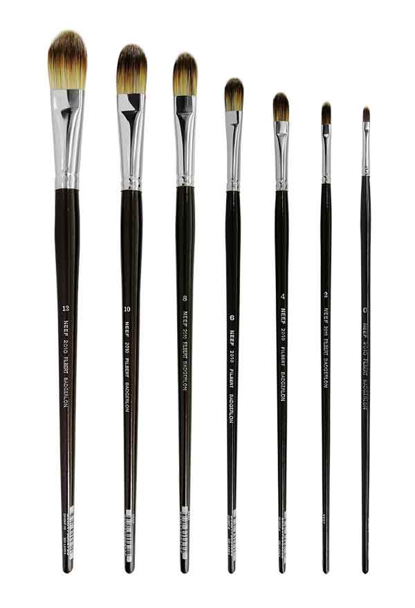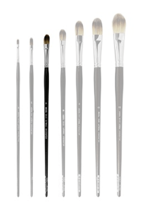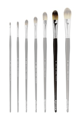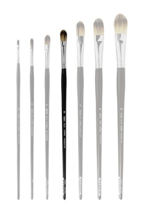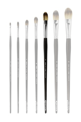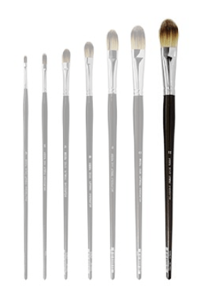 FILBERTS - flat ferrule with rounded hair end. A versatile brush gives softer finish than the flats or bright.