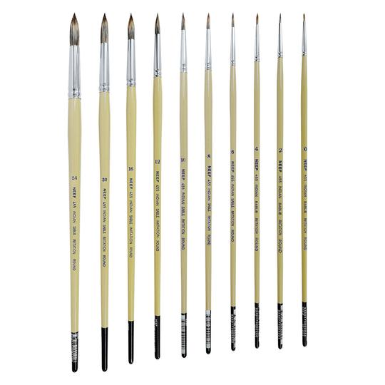 ROUNDS - Round ferrule with round pointed hair. Very popular (as are the filberts) with tonal painters.