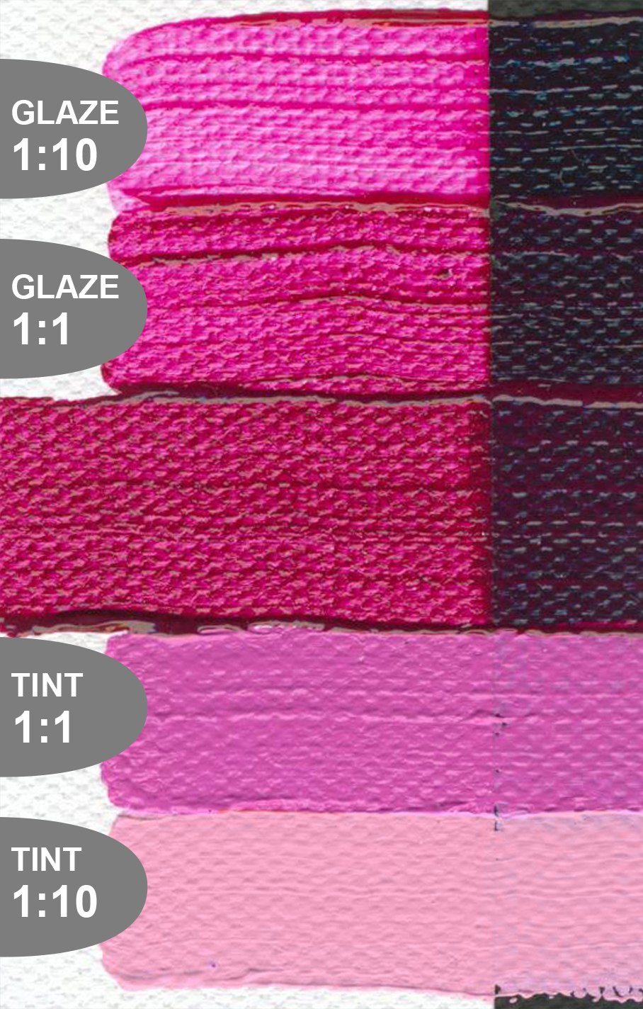 A transparent "quin," this single pigment colour is a terrific start for brilliant reds and pinks as well as fiery glazes that are exactly what one associates with magenta. (Series7)