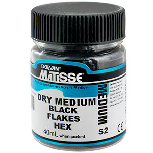 Use these gleaming hexagonal black flakes as either a striking decorative effect or a distinctive texture on paintings and indoor sculptures. Precision cut from coated polyester film, Black Flake Hex is best used as a final finish to preserve its sparkle and can also be sprinkled onto a freshly painted surface. To maintain the shiny surface of the black flakes, mix with either MM4 Gel Medium or MM7 Gloss Varnish and Gloss Medium, as these mediums have a gloss finish.