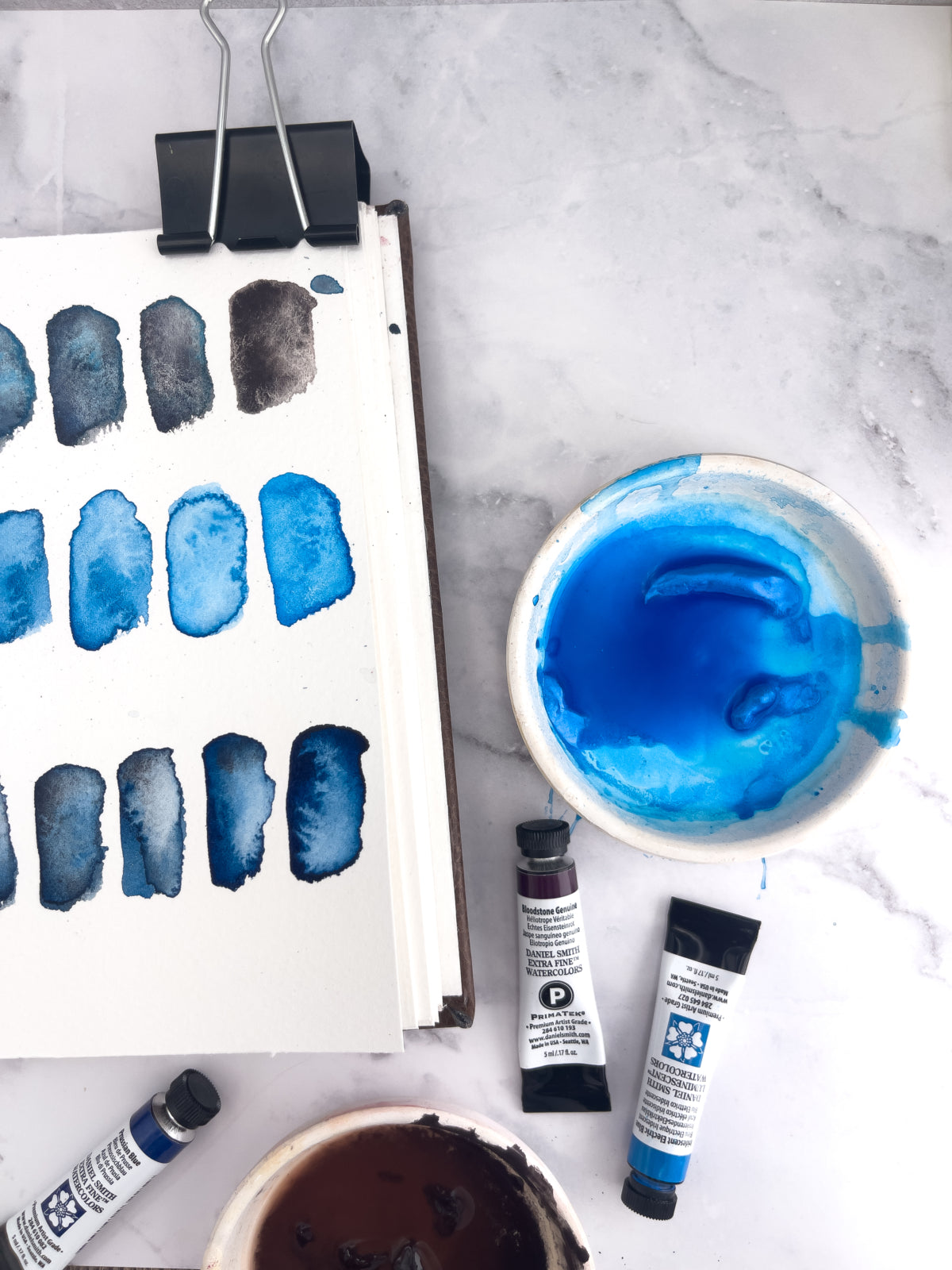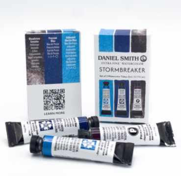Command the drama of the elements with this bold and brooding trio. The mysterious granulation of Bloodstone Genuine, the luminous punch of Iridescent Electric Blue, and the deep, stormy power of Prussian Blue come together for atmospheric, high-impact work. Perfect for wild seas, turbulent skies, and abstract expression.