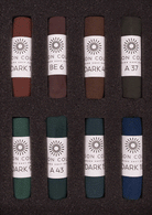 Our Dark 8 set, specially selected by Unison Colour. This small set contains the essential Dark colours from our large range of pastels.