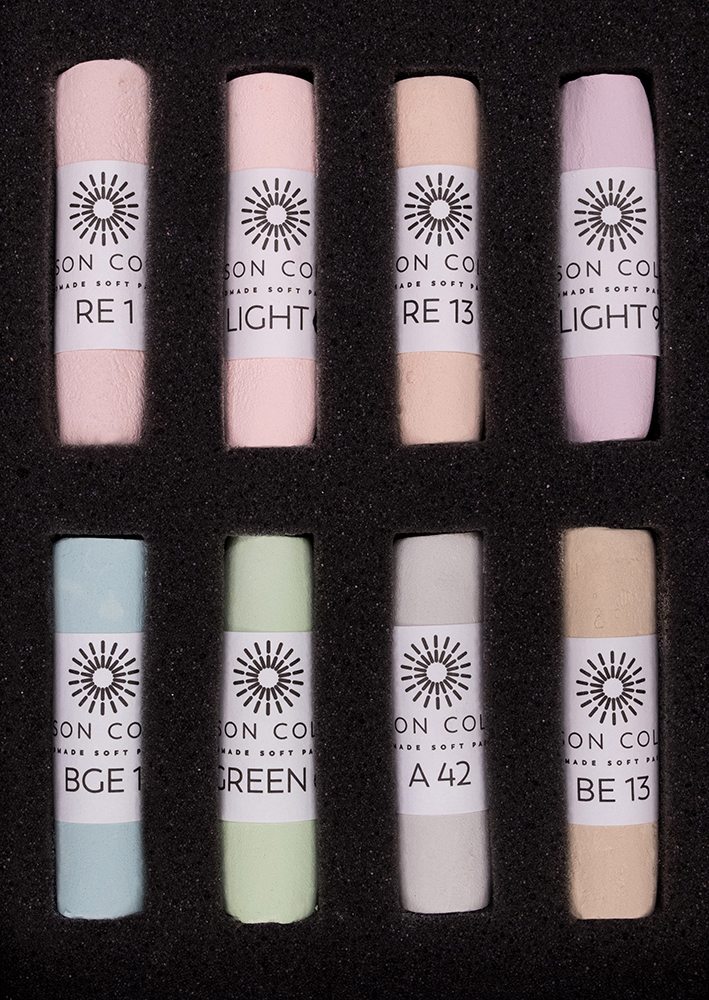 Our Light 8 set, specially selected by Unison Colour. This small set contains the essential Light colours from our large range of pastels. Unison Colour Soft pastels allow for ease of use with a highly blendable texture.