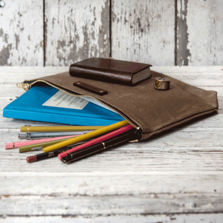 A wonderful folio pouch that fits an iPad, notebook and other larger necessities. Use as a clutch or toss in your bag for a little more organization!