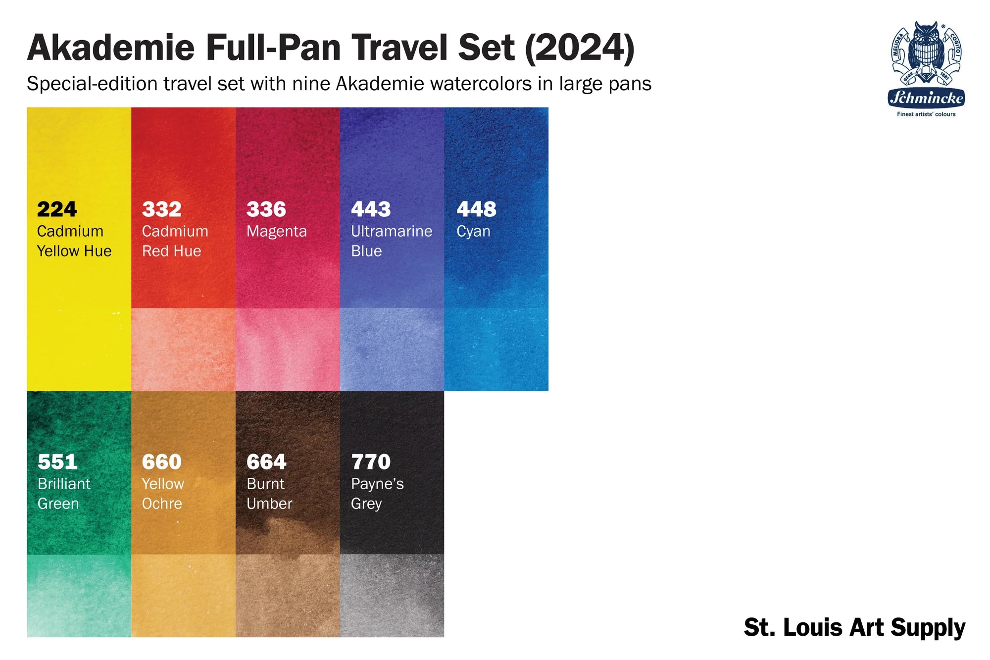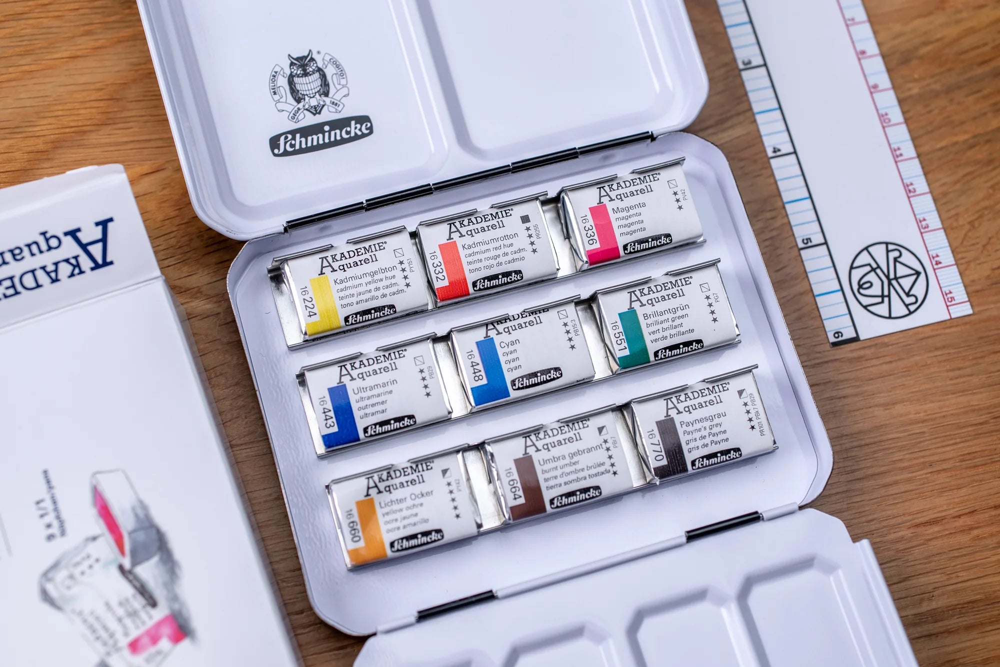 The optimum amount of ox-gall is added to each colour to give artists ultimate control with the flow and distribution of colour. The binder which is used is Kordofan Gum Arabic from the Southern Sahara region. Like most natural products, the integrity and quality of the Gum Arabic differs from year to year, so Schmincke tests each batch of Gum Arabic every time, to select only the best crop of the respective year.
