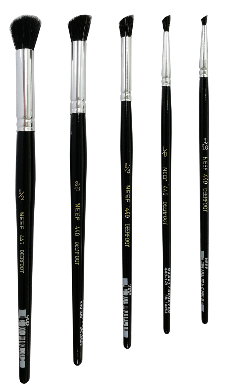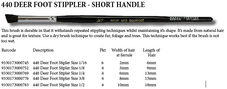 This brush is durable in that it withstands repeated stippling techniques whilst maintaining it’s shape. It’s made from natural hair and is great for texture. Use a dry brush technique to create fur, foliage and trees. This technique works best if the brush is not too wet.
