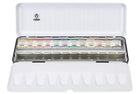 The set is equipped with 12 half pans of the finest Horadam watercolour plus 12 empty spaces